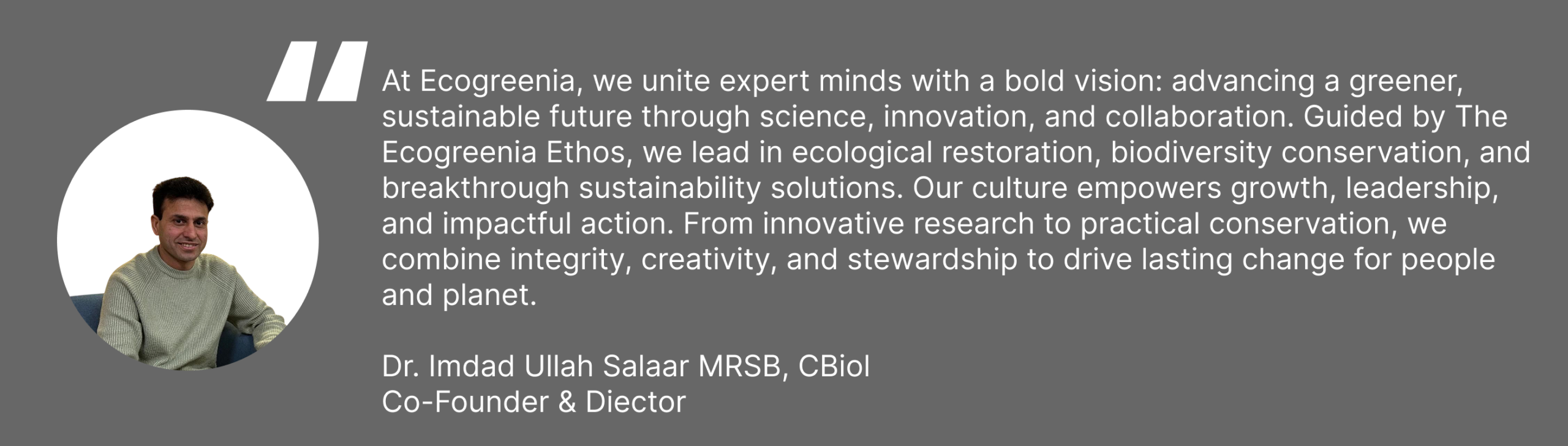 Ecogreenia is a multidisciplinary collective of visionary ecologists,enivormental scientists,renewable energy specialists,and conservation startegists. With decades of combined expertise,we bridge the gap between scientific rigor and actionable solutions.